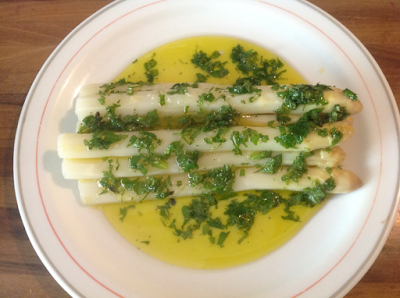 Espárragos con vinagreta de hierbabuena